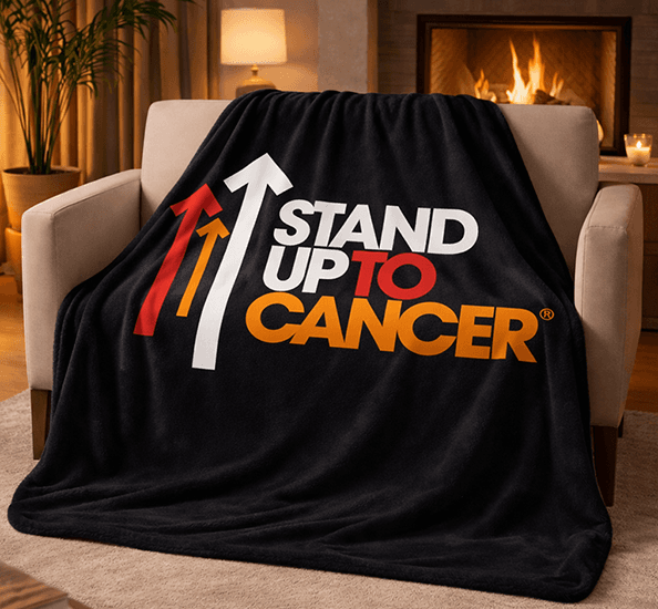 With your monthly gift of just $19/month or more, you will receive a Stand Up To Cancer blanket as a 'Thank You' and a reminder of how your ongoing support can help CURE cancer!
